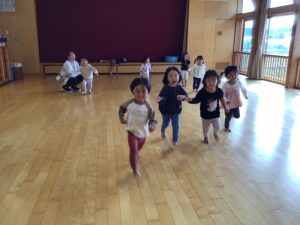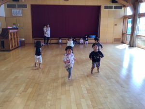 過日実施した幼児部の運動会に刺激を受け、乳児部さんも運動会ごっこを行いました。