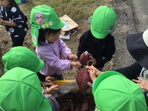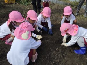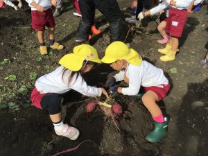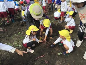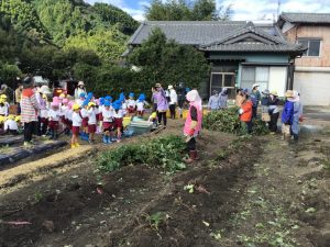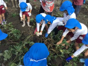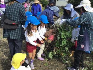 JA婦人部の皆さんのご協力をいただき、恒例のさつまいも掘りを行いました。