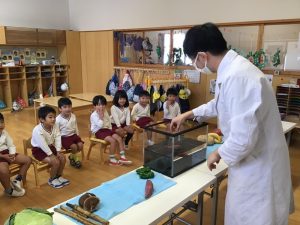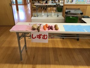 野菜や果物に興味を持ってもらおうとのねらいです。