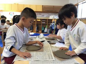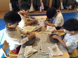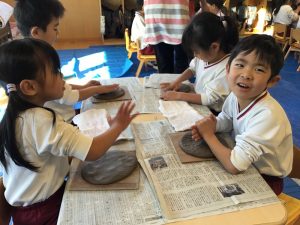 藤枝市の陶芸センターより講師をお招きして、5歳児の陶芸教室を行いました。