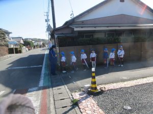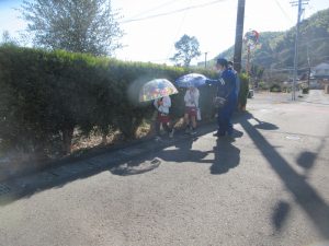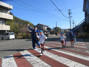 今日は、就学前の交通安全教室が行われました。4月から小学生のふじ組さん、歩いて登校するので改めて歩行者の交通マナーを勉強しました。