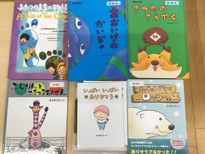 むらまつけーじさんは、上段左のような絵本の作者です。藤枝市出身の方です。